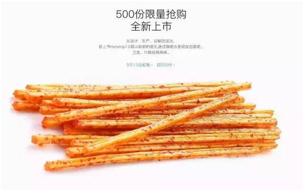 在iPhone7发布会的当天,卫龙辣条的天猫旗舰店更新了,推出新品Hotstrip 7—辣条7,借势又火了一把。
