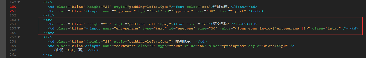 3、再打开dede emplets目录下的catalog_add.htm,在第250行搜索
